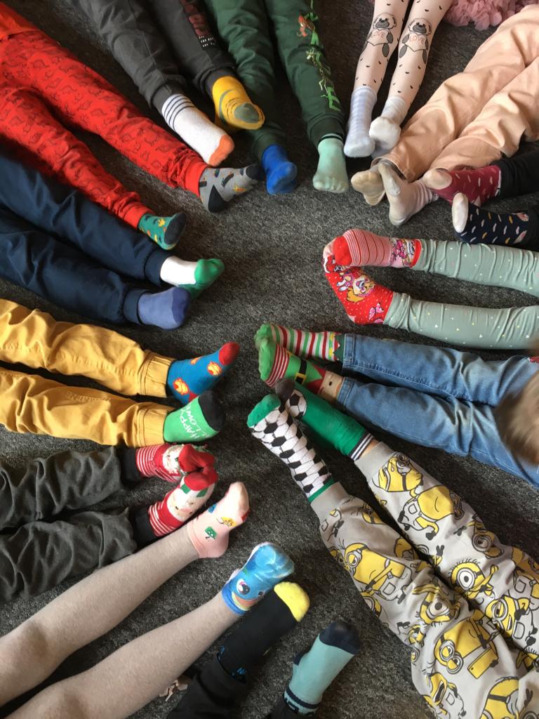 Ideą tego święta jest zwrócenie uwagi społeczeństwa na osoby z zespołem Downa i ich potrzeby, zwiększenie świadomości o chorobie oraz promowanie praw osób z zespołem Downa do pełnego uczestniczenia w życiu społecznym.   Uczniowie i nauczyciele naszej szkoły również włączyli się do akcji i kolorowe skarpetki ochoczo zawitały w tym dniu w niemalże wszystkich klasach. Każda skarpetka była inna, każda kolorowa, każda „nie do pary” i każda sprawiała dużo radości i niosła za sobą przesłanie niwelowania barier, tolerancji  i przezwyciężaniu krzywdzących stereotypów.
