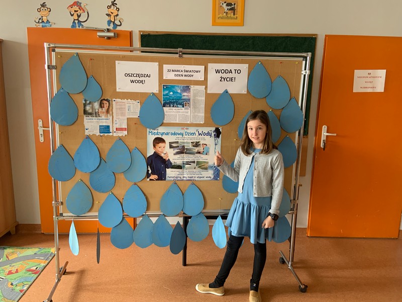 Temat wody w ostatnich latach stał się dla nas ludzi na świecie tematem bardzo istotnym. Wody coraz bardziej nam brakuje. Musimy wszyscy zdać sobie z tego sprawę i zacząć ją szanować. Stąd dzieci w świetlicy wykonały z dostępnej makulatury dekoracje, które wykorzystaliśmy do wykonania gazetki na hol szkoły oraz dekoracji na okna. Chcieliśmy zwrócić uwagę nas wszystkich na ten istotny temat.