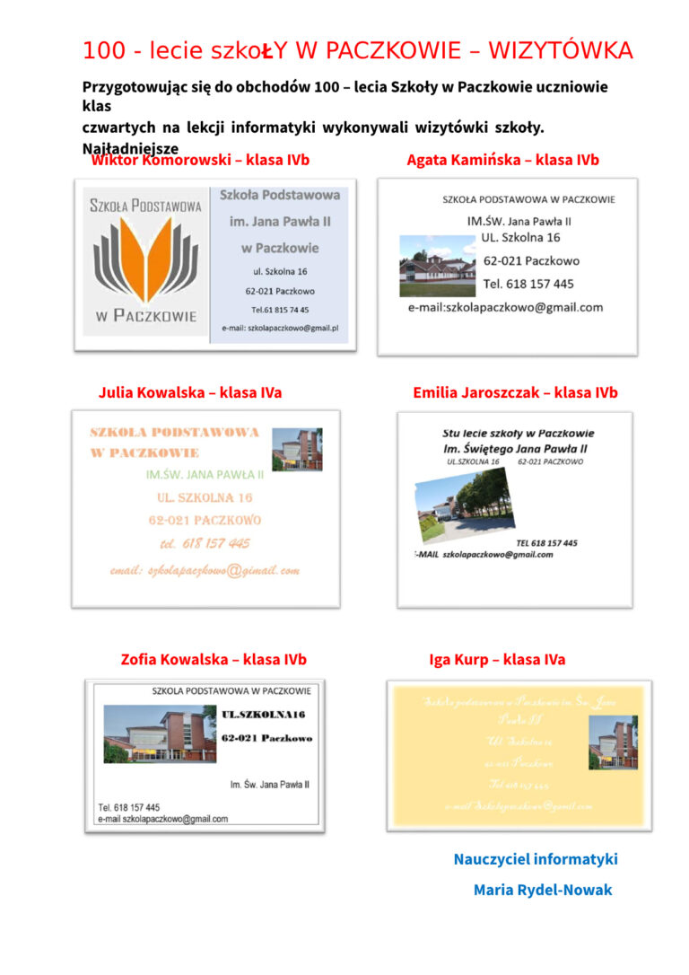 100 – lecie Szkoły w Paczkowie – Wizytówka 2025-07-19 100 – lecie Szkoły w Paczkowie – Wizytówka Przeczytaj wpis »