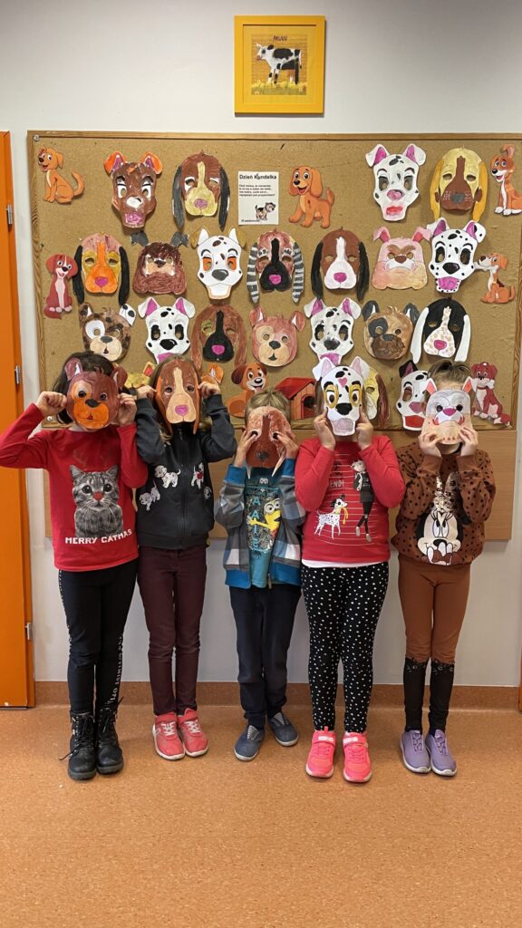 Dnia 25 października obchodziliśmy DZIEŃ KUNDELKA. Data święta nie jest przypadkowa i zbiega się z Dniem Ustawy o Ochronie Zwierząt, który obchodzony jest corocznie dzień po dacie wejścia w życie Ustawy (obowiązuje ona od 24 października 1997 r.). Święto to  powstało, aby podziękować wszystkim kundelkom za ich oddanie, wierność i przywiązanie do człowieka. W 2000 roku powstało Stowarzyszenie Przyjaciół Kundelka, ale ze względu na brak wsparcia musiało zostać rozwiązane, a po działalności Stowarzyszenia pozostał właśnie Dzień Kundelka. Aby miło uczcić ten dzień w świetlicy szkolnej, dzieci opowiadały o swoim pieskach oraz wykonały wspaniałe maski. I podobnie, jak nie ma takiego samego kundelka, tak każda maska była wyjątkowa i niepowtarzalna.