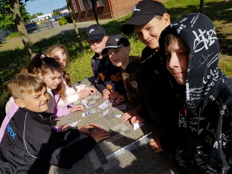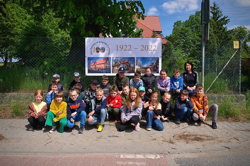 18 maja uczniowie klas 1-8 wzięli udział w grze terenowej „Czy znasz swoją szkołę?”. Celem gry było podsumowanie działań podjętych z okazji 100-lecia placówki. Uczniowie kierując się zagadkowymi wskazówkami odwiedzili wszystkie budynki, w których mieściła się nasza szkoła. Przy każdym budynku czekało na nich wyzwanie. Musieli się wykazać znajomością historii szkoły oraz działań podejmowanych przez cały rok.  W osiągnięciu sukcesu liczyła się również spostrzegawczość i umiejętność pracy w grupie. Wszyscy uczniowie fantastycznie poradzili sobie z zadaniami, a przy okazji również dobrze się bawili.