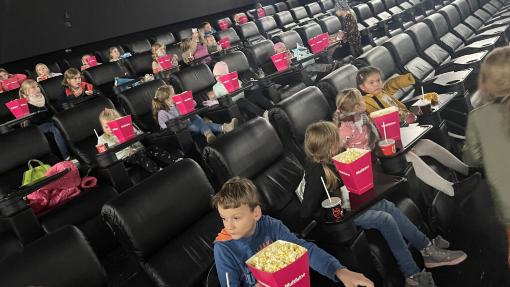 W dniu 3 listopada wraz z uczniami wybraliśmy się do kina na seans filmowy pt. „LASSIE WRÓĆ”. To ponadczasowy film, przedstawiający historię przyjaźni chłopca i jego wiernego owczarka Collie oparta na bestsellerowej książce Erica Knighta. Zarówno film, jak i książka podbiła serca ludzi na całym świecie. Dzieci wspaniale spędziły czas w kinie i już nie mogą się doczekać na kolejne wspólne wyjście.